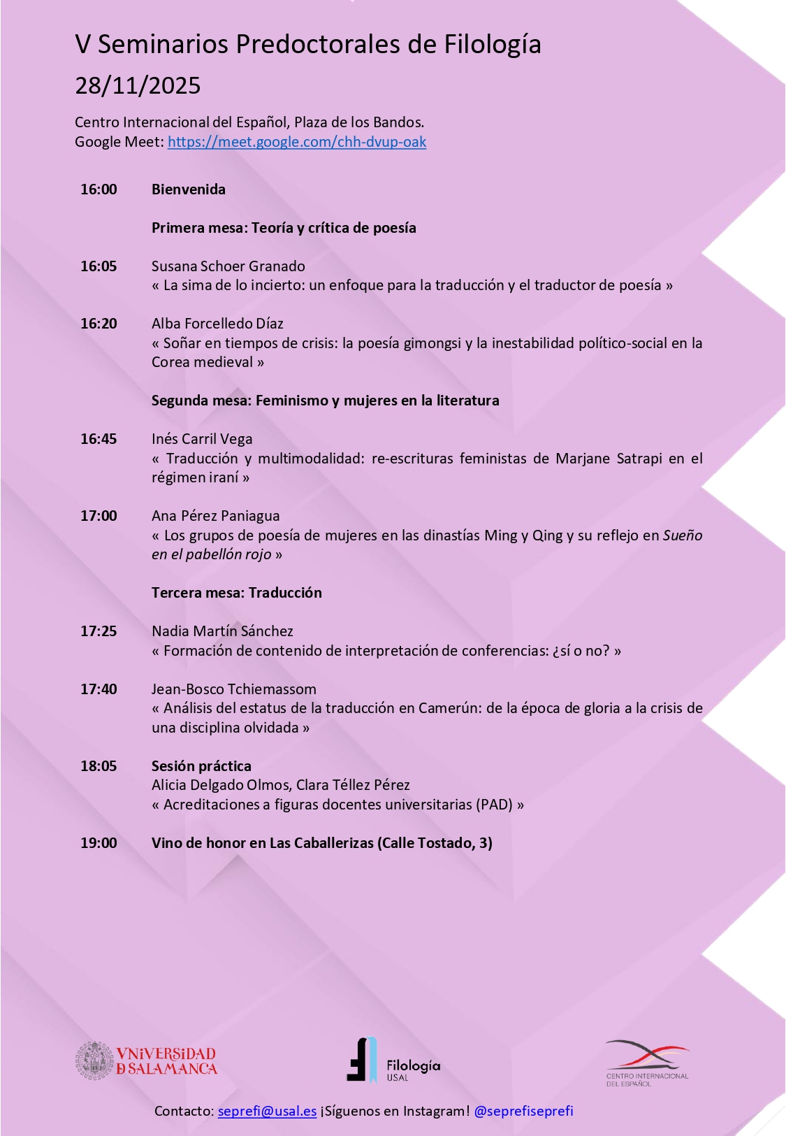 20 Oct V Seminarios Predoctorales de Filología